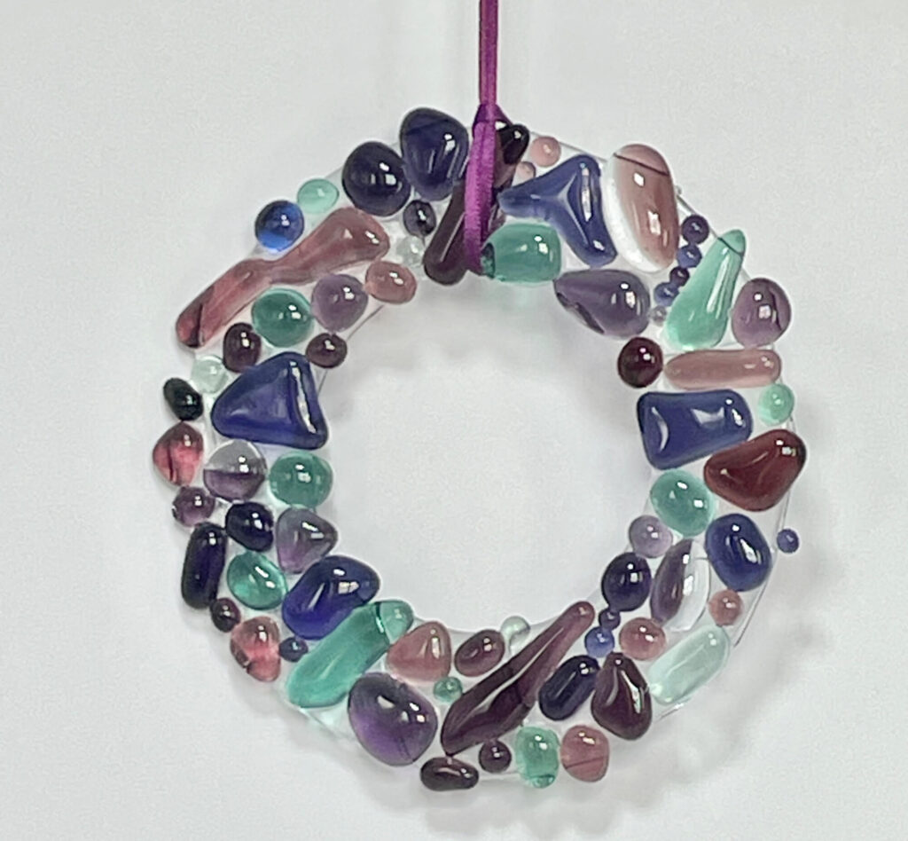 After a 36 year career in Local Government Sally thought it was time to try something new. She loves to be creative and wanted to do something that would combine her creativity with her geeky technical side. Sally has always loved glass, particularly the reflections you get from the sun shining through garden art and after attending a couple of basic glass fusing courses she bought her first kiln in 2019. There are so many things to make, different techniques to learn, firing schedules to understand – the possibilities for experimentation are endless. Sally loves teaching workshops, they are always relaxed and fun and she encourages everyone to come up with their own designs. She particularly enjoys working with people who say they are not artistic or creative because they always surprise themselves by creating something beautiful.